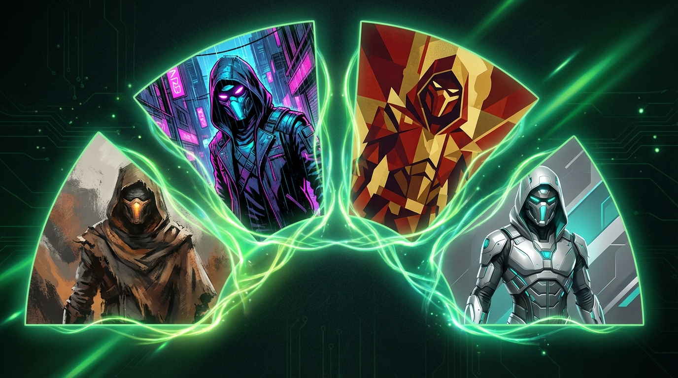 Explore different looks for your characters and worlds. Same identity, different style, outfit, or environment.